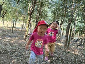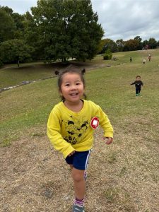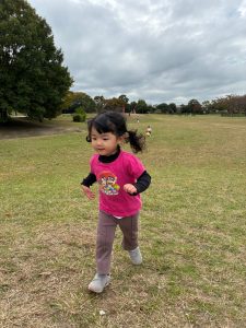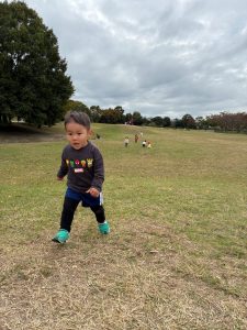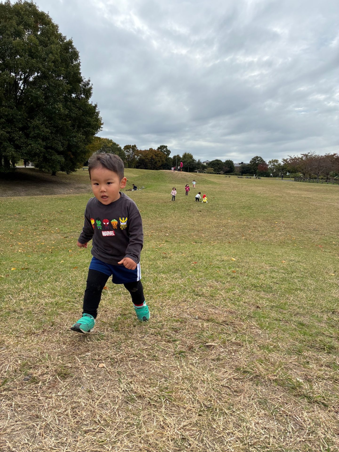 大きな原っぱを駆け回りお山で木の電車に乗ってみたりと、