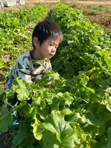 ブロッコリーや、ねぎ、カリフラワーなどたくさんのお野菜を見ながら大根畑へ。