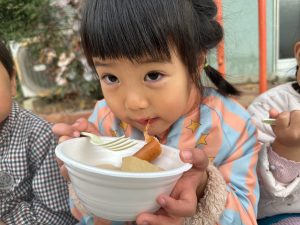 いつもは大根を食べないお友だちも、ほんの少しだけでもトライしてくれたね。