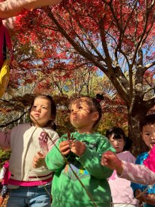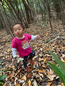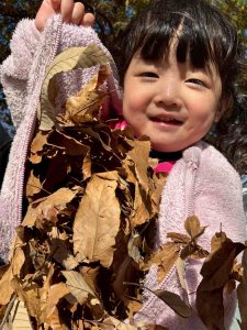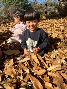さて休憩を終えた後は落ち葉遊びを楽しもう!