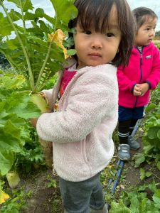 収穫の後は畑を探検してたくさんのお野菜を探してきました。
