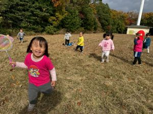 秋の原っぱで元気に体を動かして遊ぶ子どもたちの姿を見ていただけたと思います。