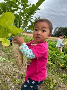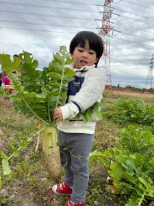 先生と協力して大きな大根をとることができました♪