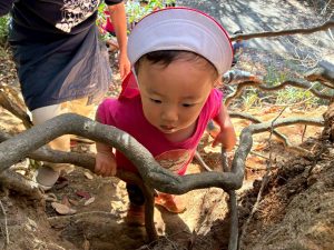 山登りの最中にお土産の枝を探す余裕を見せてくれるお友だちもいました。