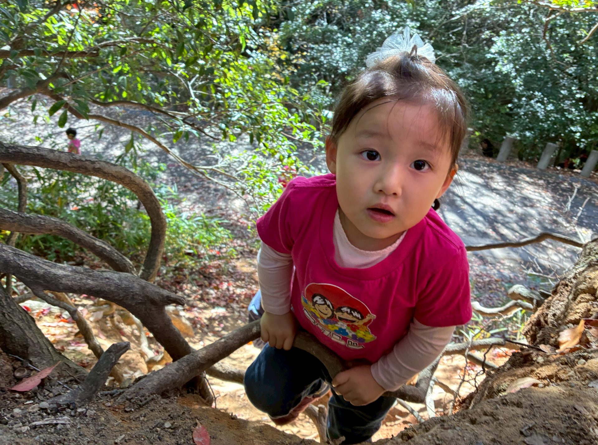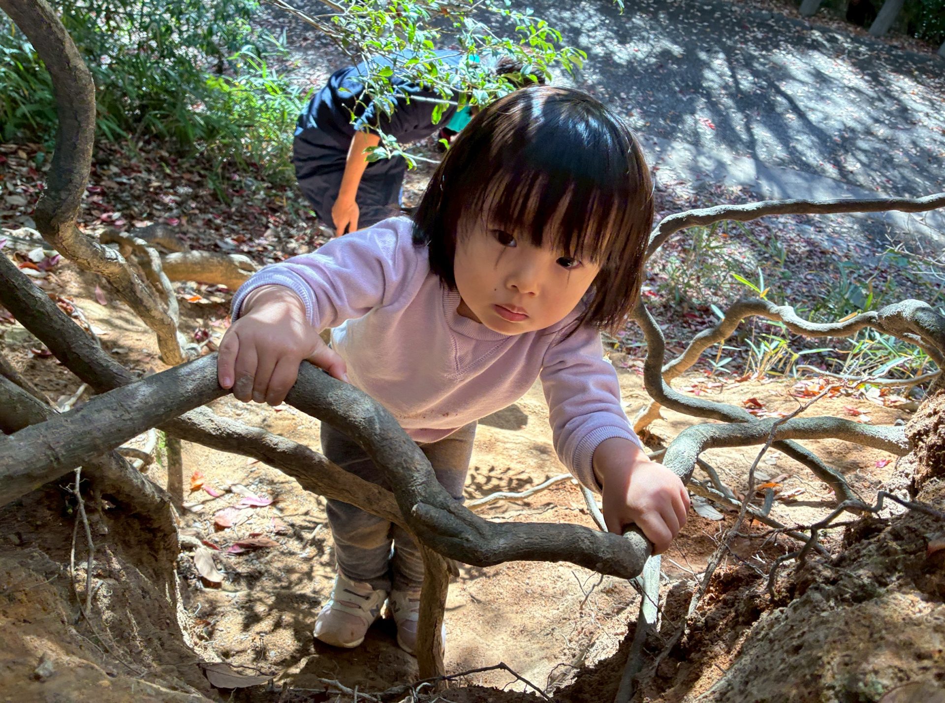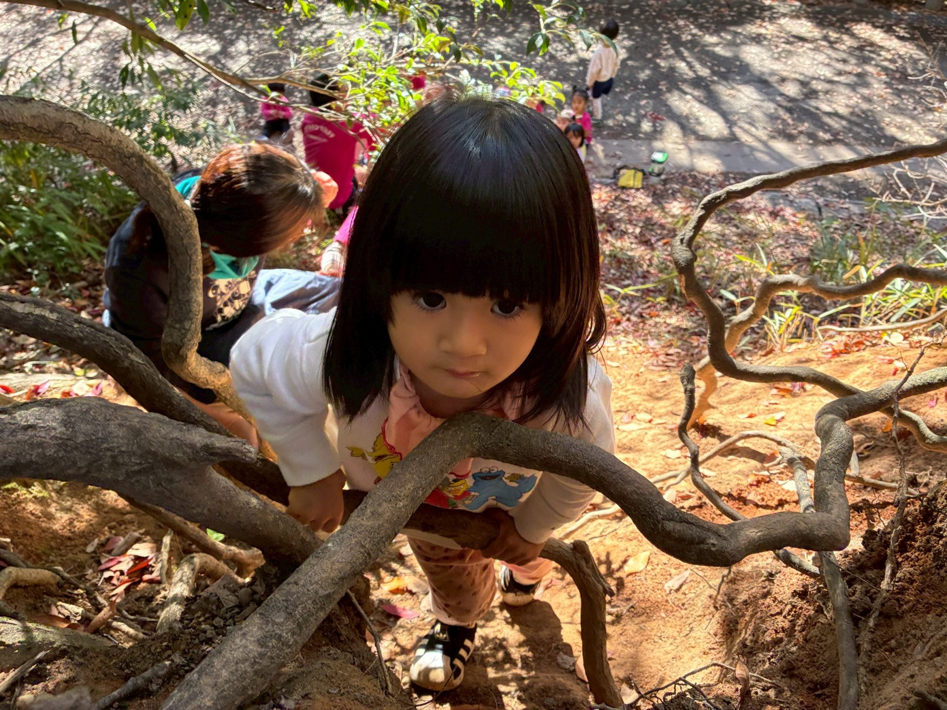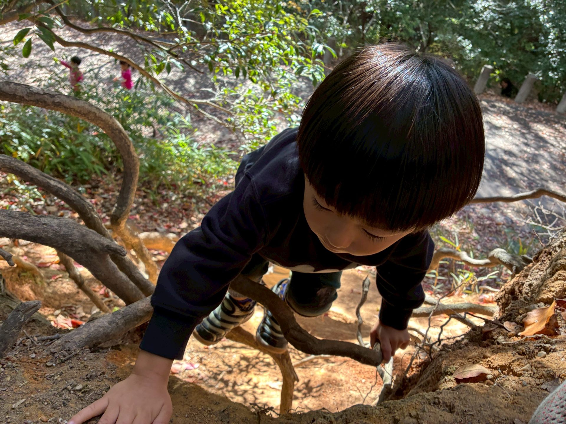 山登りの最中にお土産の枝を探す余裕を見せてくれるお友だちもいました。