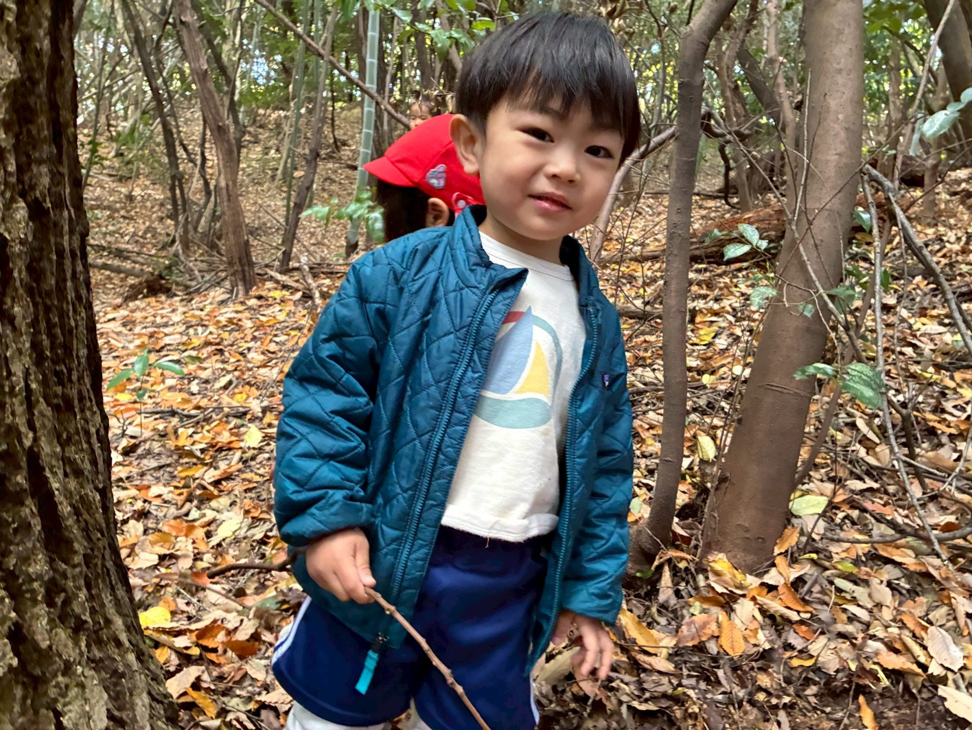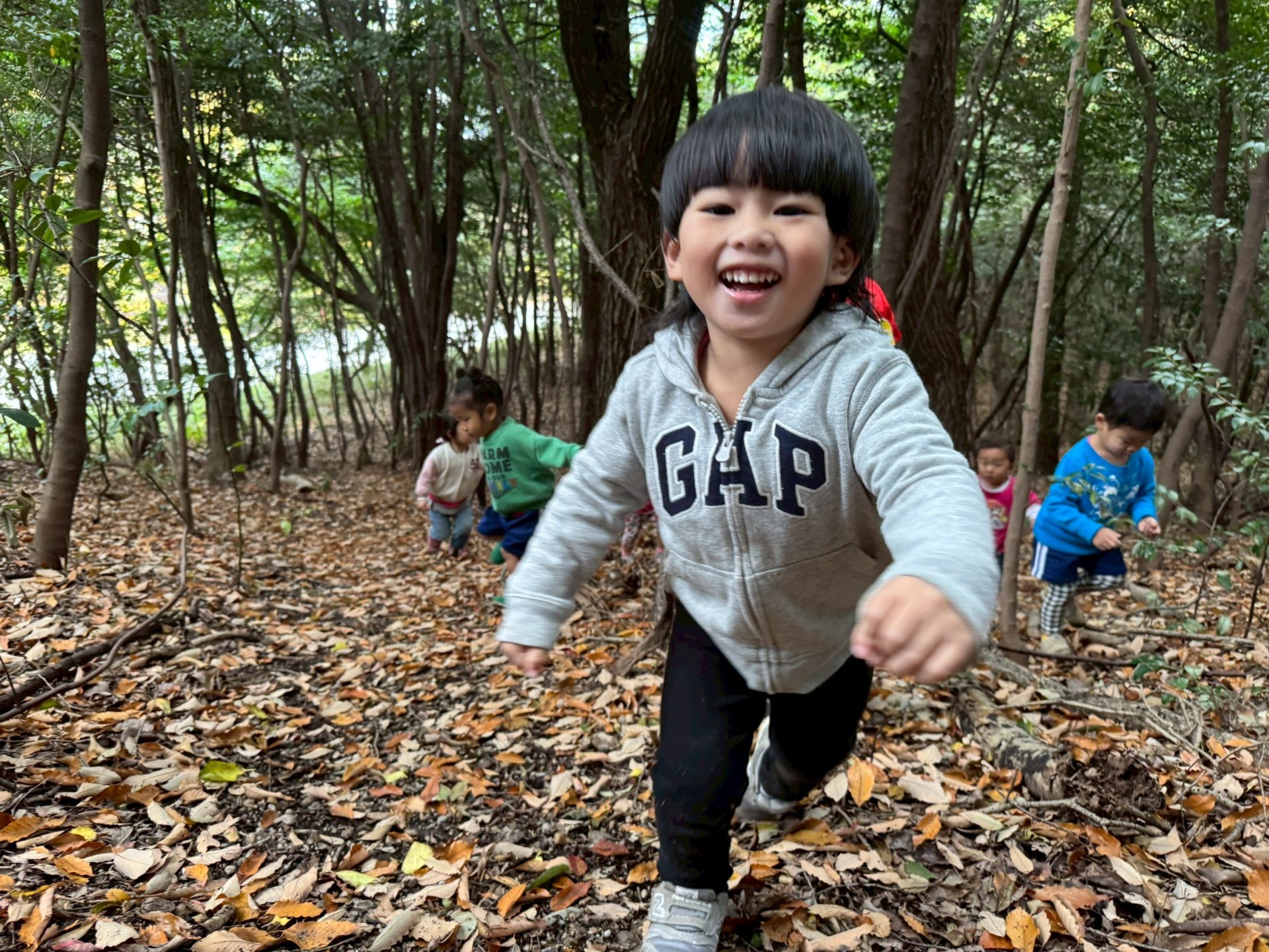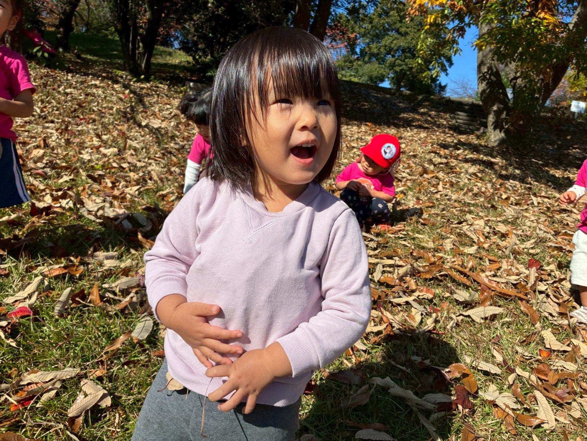 さて休憩を終えた後は落ち葉遊びを楽しもう!