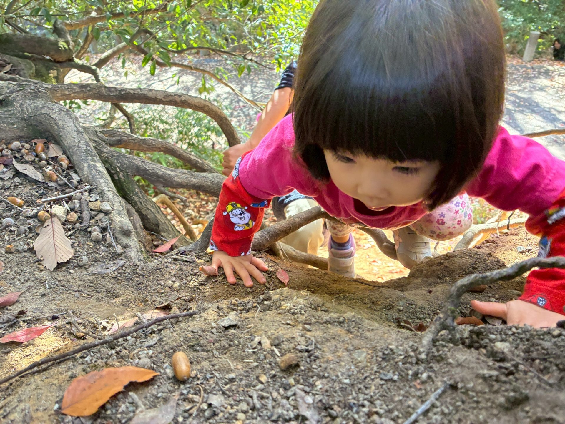落ち葉の中は意外に暖かいようで赤さんお気に入りのご様子でした。