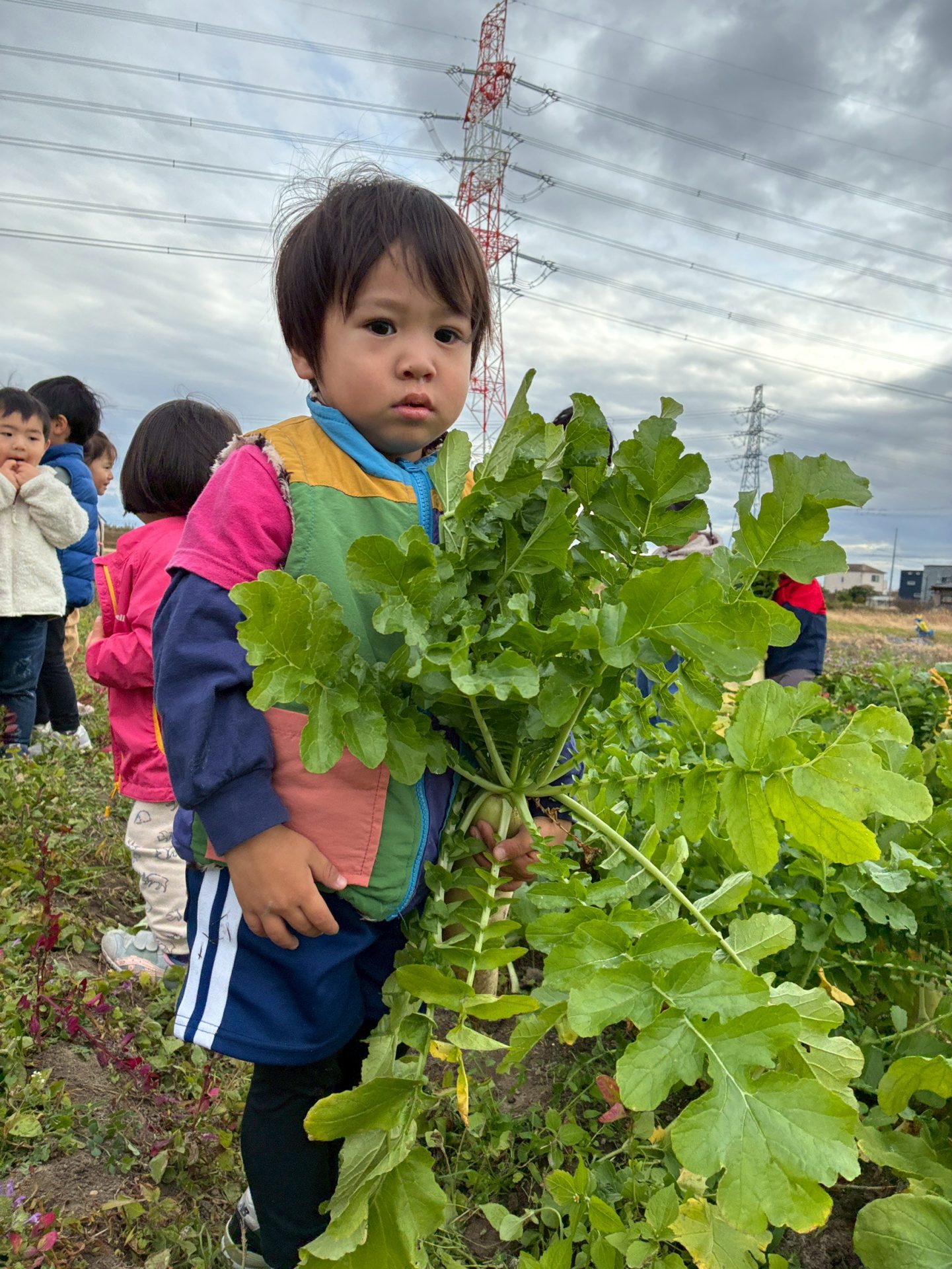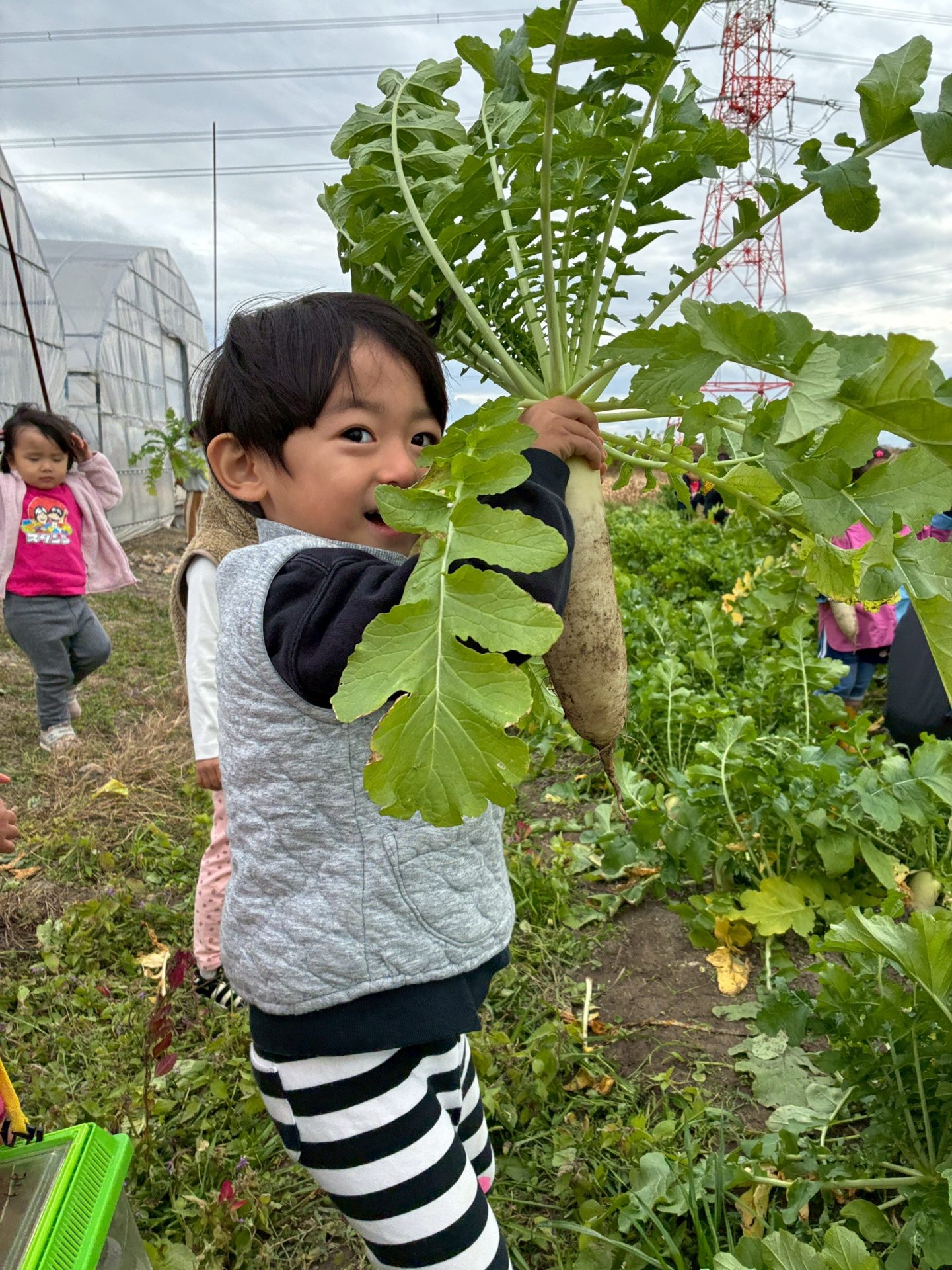 収穫の後は畑を探検してたくさんのお野菜を探してきました。