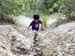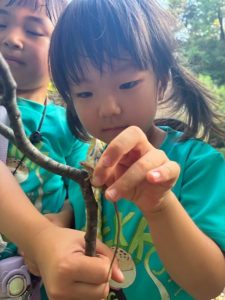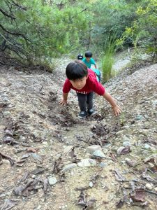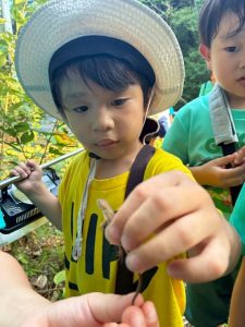 灼熱の川遊びを終え、今度は久々に陸地へ上がり、お山遊びと生き物探しを楽しんでいきます。