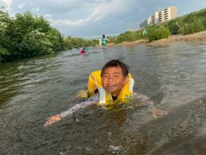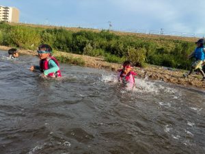 流れに身を任せて遊べる天白川は、みんなのお気に入りの場所。