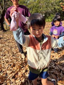 さらに、落ち葉の中に宝物に見立てた「はちまき」を隠して、宝探しタイム!
