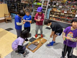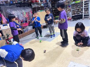 こまにけん玉に皿まわし、ベイゴマ、ヨーヨー、中国こまとここでしかできない遊びを時間ギリギリまで楽しみました。