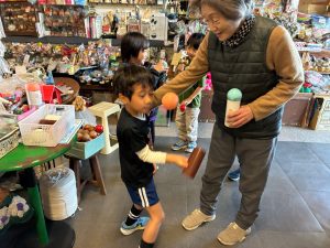 昔ながらのお正月遊びに、寒さを忘れて子どもたちも夢中になって楽しんでいました。