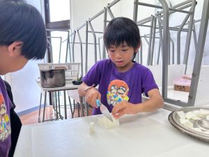 「レッツ!大根クッキング!」ということで、収穫した大根を使って調理にも挑戦しました。