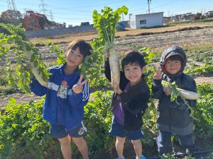 冷たい風が吹く寒い中での大根掘りは、この時期ならではの楽しさがありますね♪