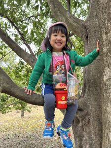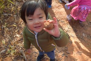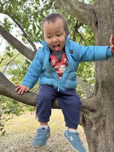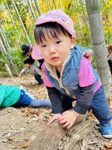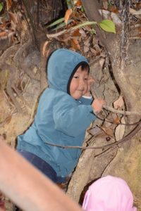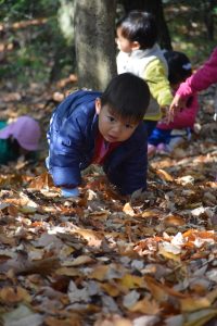 生き物探しは早々に切り上げて、木登りや落ち葉遊びで盛り上がりました。