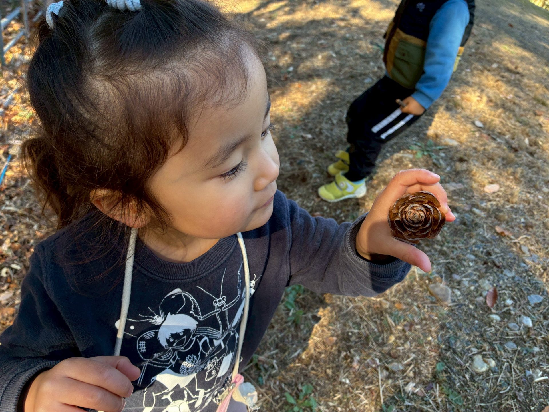 相生山ではマツボックリやトゲトゲの葉っぱ『ヒイラギ』を見つけました。