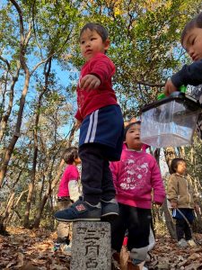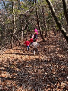 さてウォーミングアップが終わるとお山の奥へ探検です!