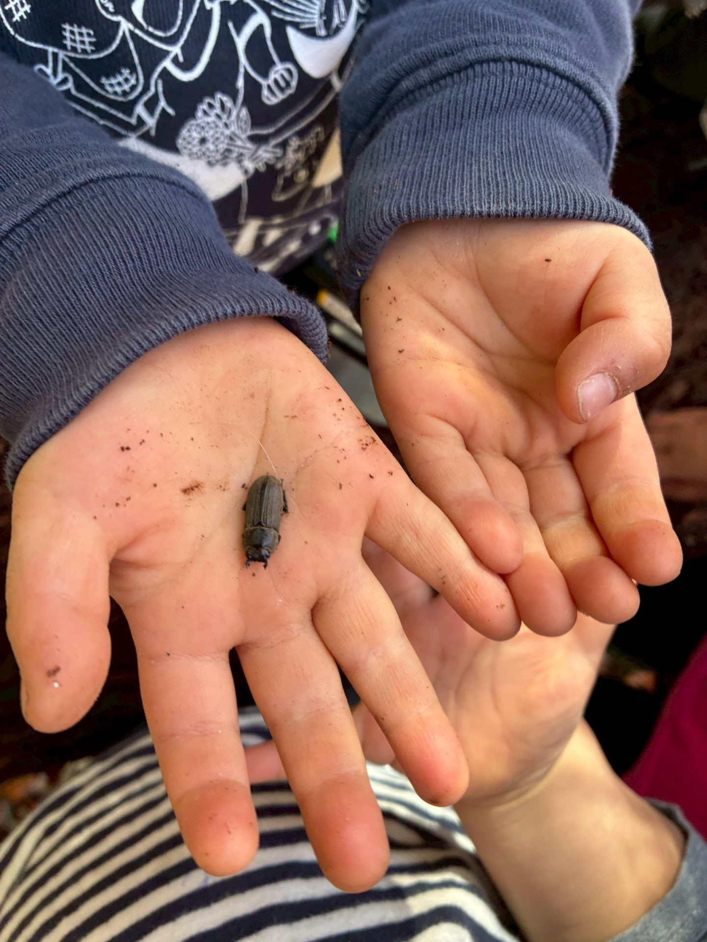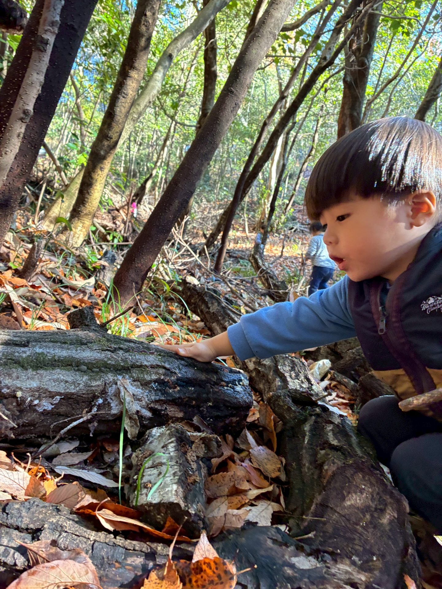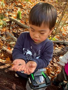 また生き物さがしの日には森の中で木を転がして生き物を探しました。