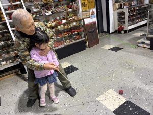 『日本独楽博物館』に到着して、まずはおっちゃんとおばちゃんにご挨拶。
