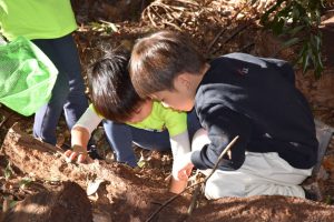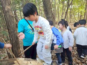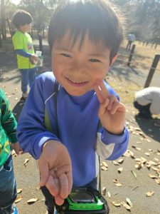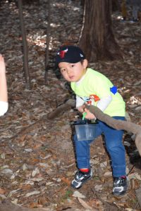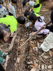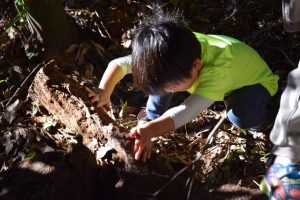 こちらのお友達はドングリを割って、幼虫探し。