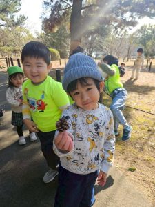 途中、大きくて形の綺麗な『松ぼっくり』を見つけたよ♪