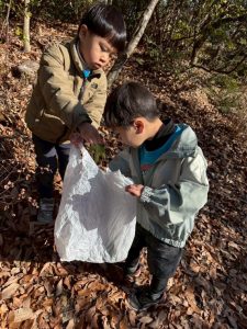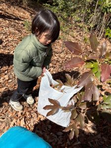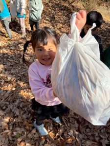 『落ち葉が良い』と落ち葉を袋いっぱ入れてくれるお友達。