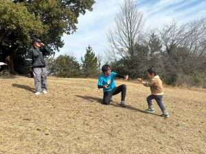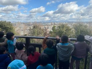 こんなに空気の澄んだ日は、遠くのお山まで見えるので、行き先を猪高緑地に変え、冬のスクール合宿で行くお山を探せるのでは?と展望台を目指していざ探検。