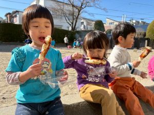 『おいしすぎる!』『おかわりは?』などなど、ほっぺや口の周りに味噌をつけ泥棒のような可愛い空さん達でした。