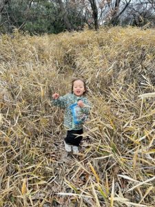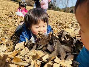 帰り道には、ももさんが大好きな落ち葉遊びもたっぷり楽しみ、自然を満喫した一日でした。