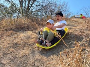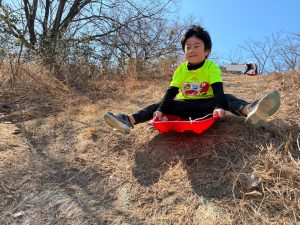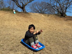 膝から滑ったり、前から滑ったり、滑るのはお得意だよねー!