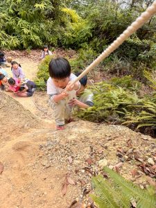 しっかりロープを持って登らないと転落してしまう。