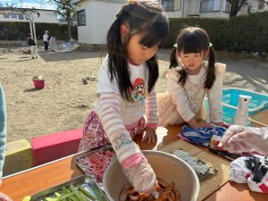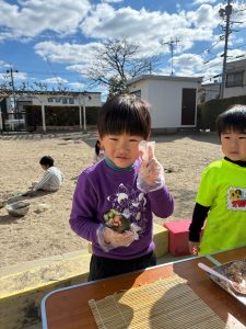 【2月3日(火)今年は南南東!恵方巻き作りin園庭】
