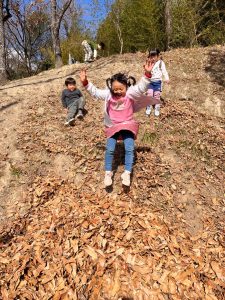 落ち葉クッションがあるから『たのしー!』