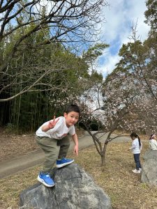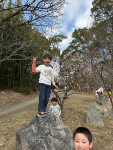 今日は少し暖かく、遠足日和だね!