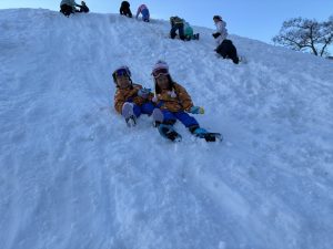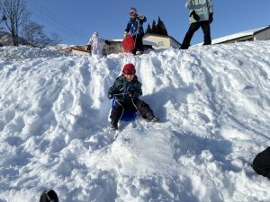 坂を滑り落ちたり、転がりながら降りたり。