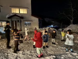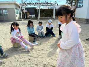 園庭のプールに座って、恵方を向いたら、いざ!!