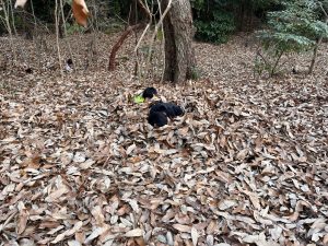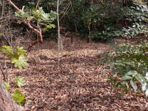 落ち葉が盛られている場所はバレバレ。