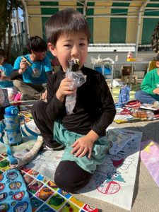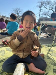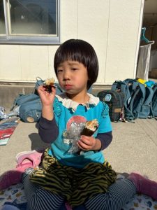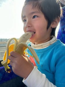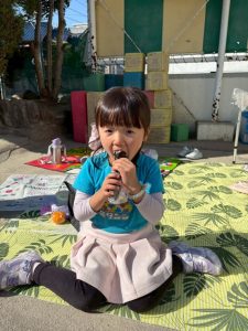 「まだまだあそびたいよー!」という気持ちが大きかったようですが、お腹もぺこぺこ。