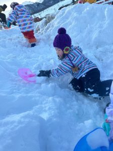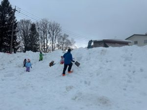 本日は、ホテルの前の道を横断し、特製雪あそびゲレンデに!