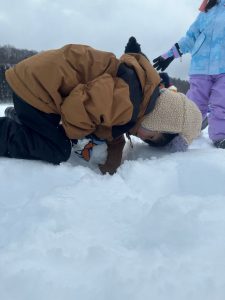 掘りやすい雪の壁を見つけ、かまくらも作っていたね。