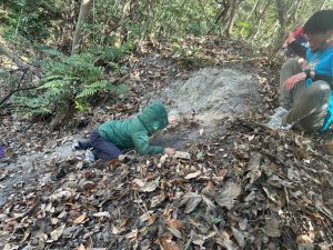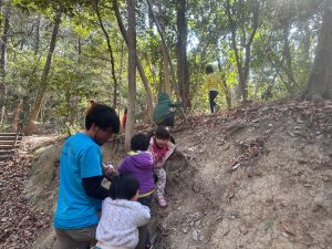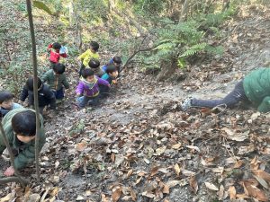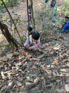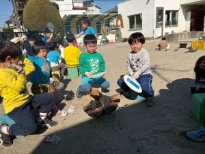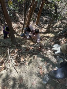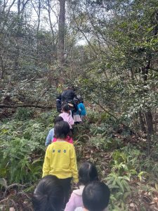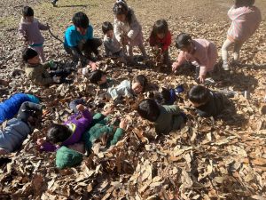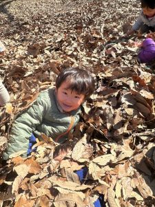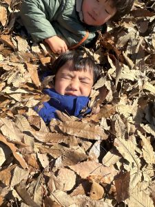 行きのバスの中で『霜柱は0度になるとできますが、実は本日の気温は、9度!でも、探しに行ってみようね。』とお話ししました。0度を手でOKマークを作って『0度ね。』というお話もしましたが、もしかしてお家でやっていた空さんもいたのでは?