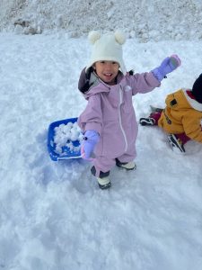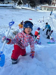お昼ご飯を食べたら、ウエアーに着替えて、待ちに待った雪遊び。