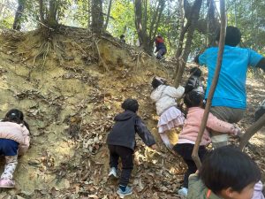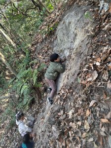 ここは、空さんで何回も登った崖。手無しで走って登ったり、上手に木の根っ子や気を使って登れるようになりました☆