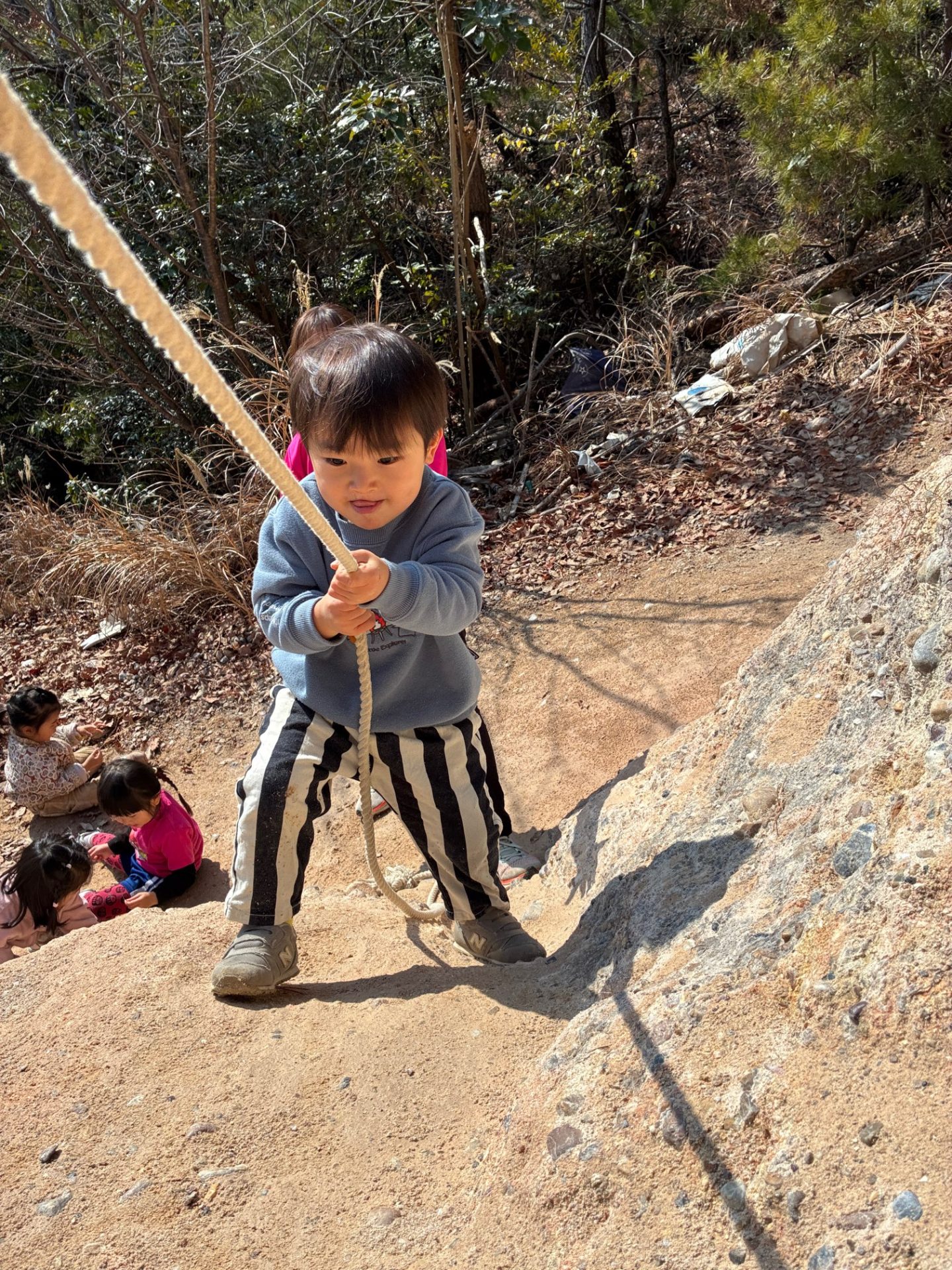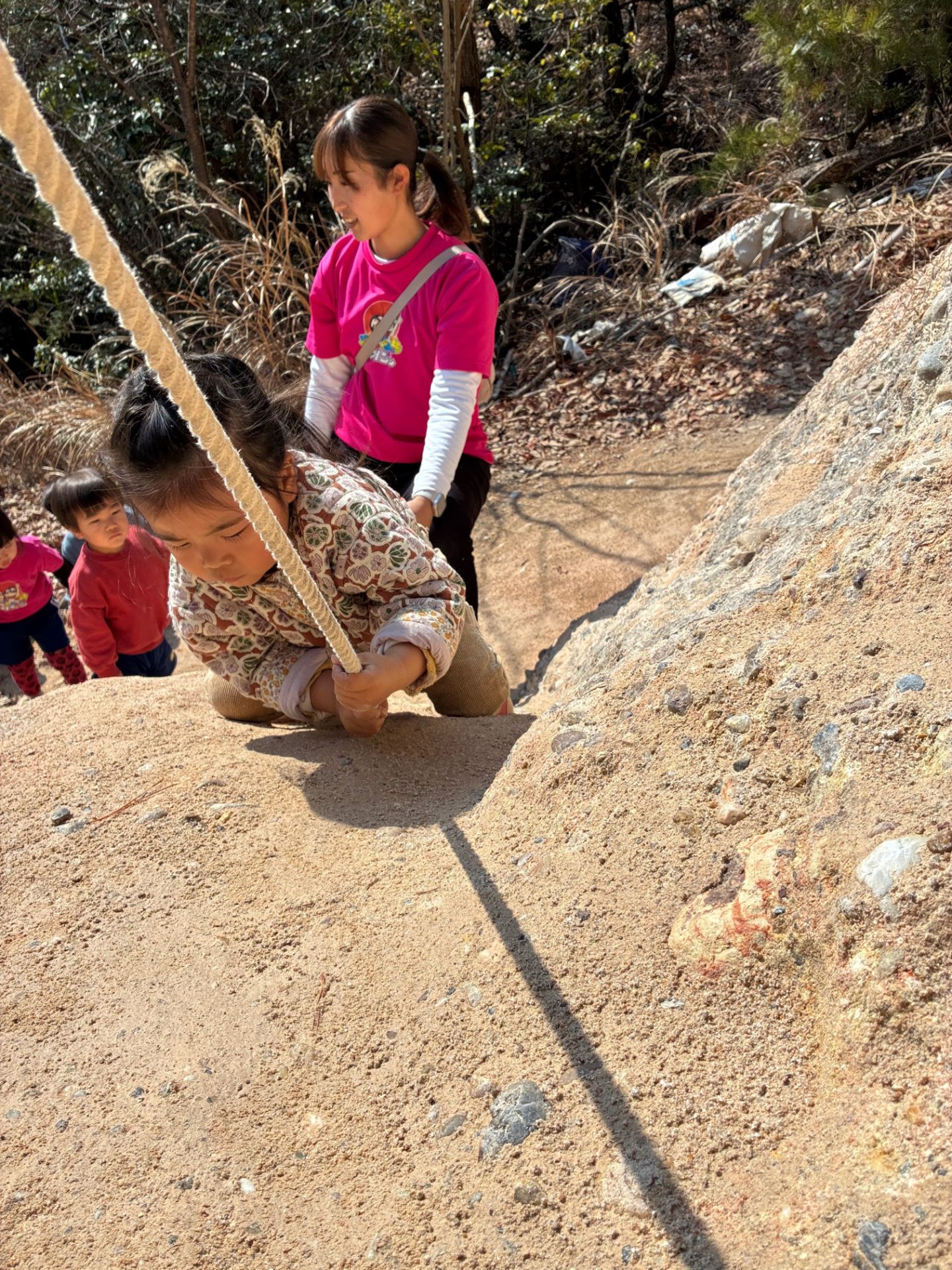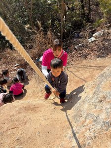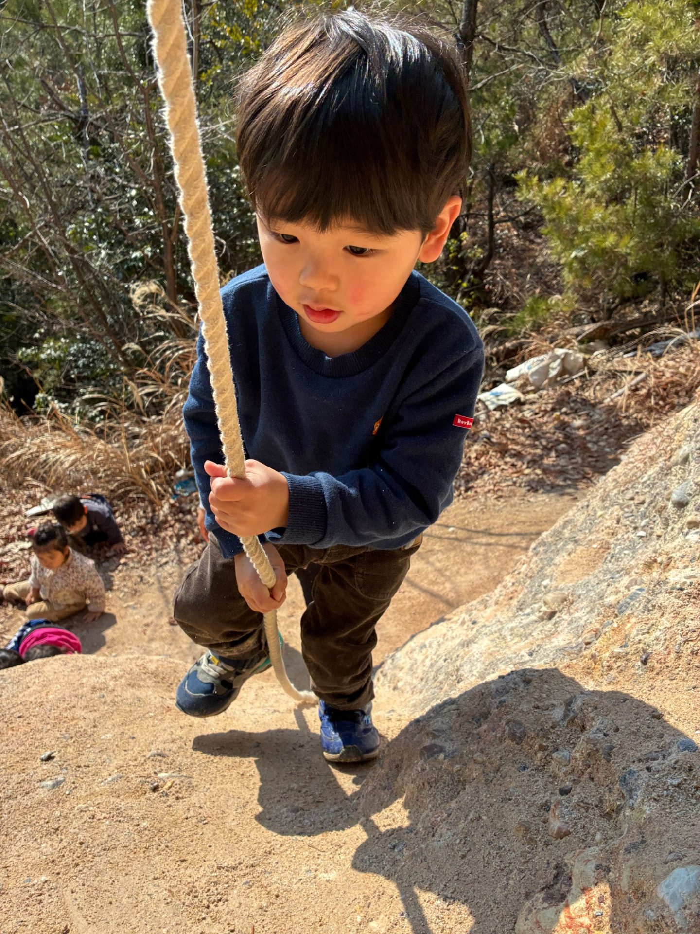 ロープを使った崖のぼりにも慣れ、とーっても上手に