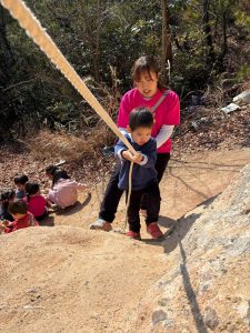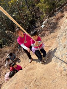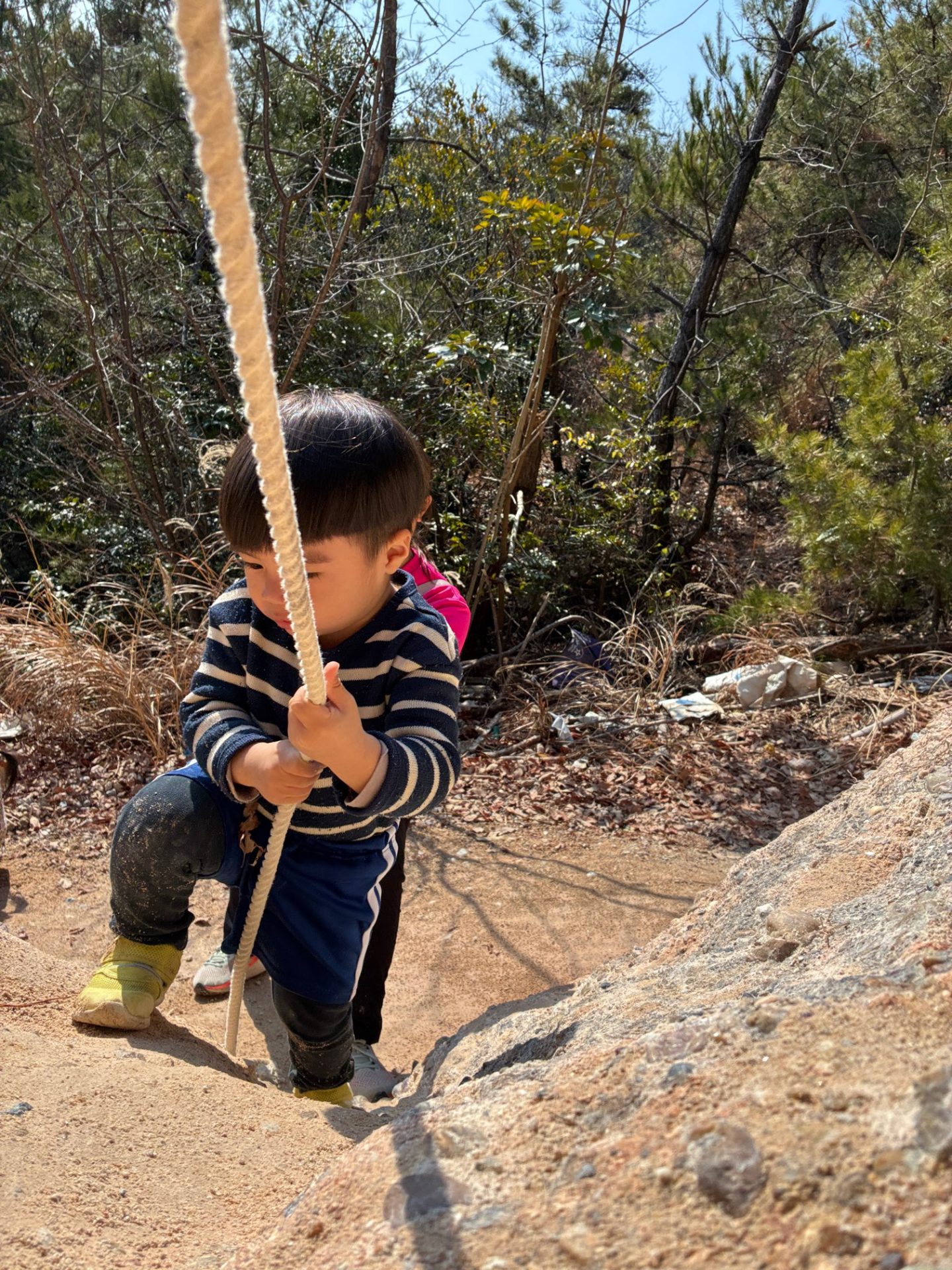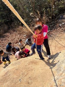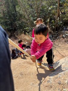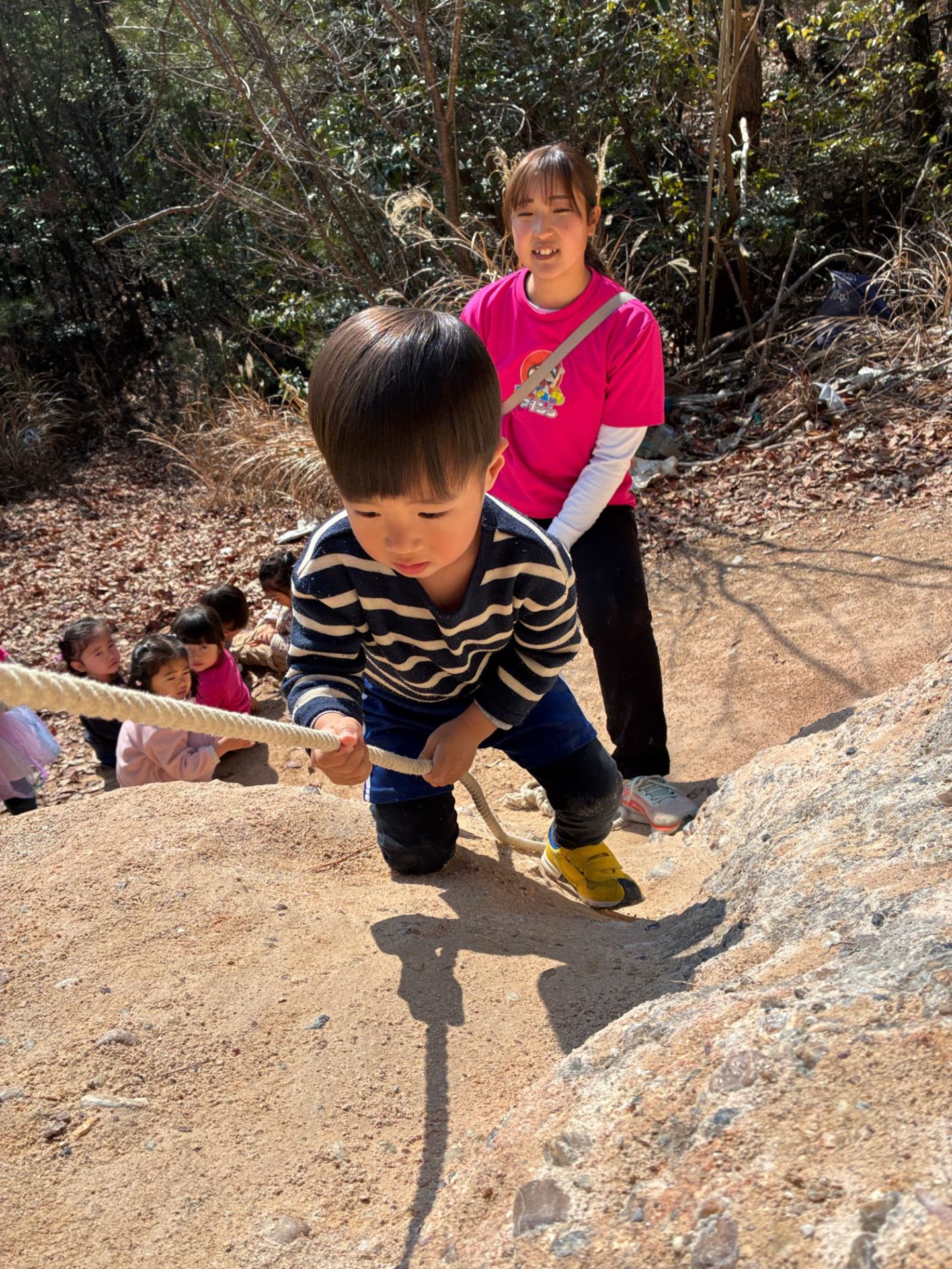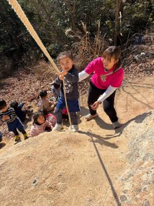 ロープを使った崖のぼりにも慣れ、とーっても上手に