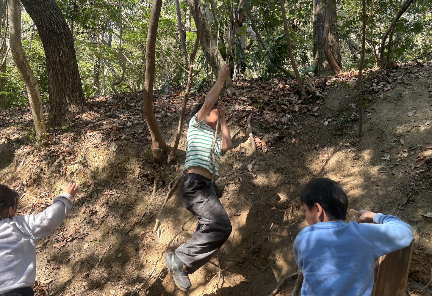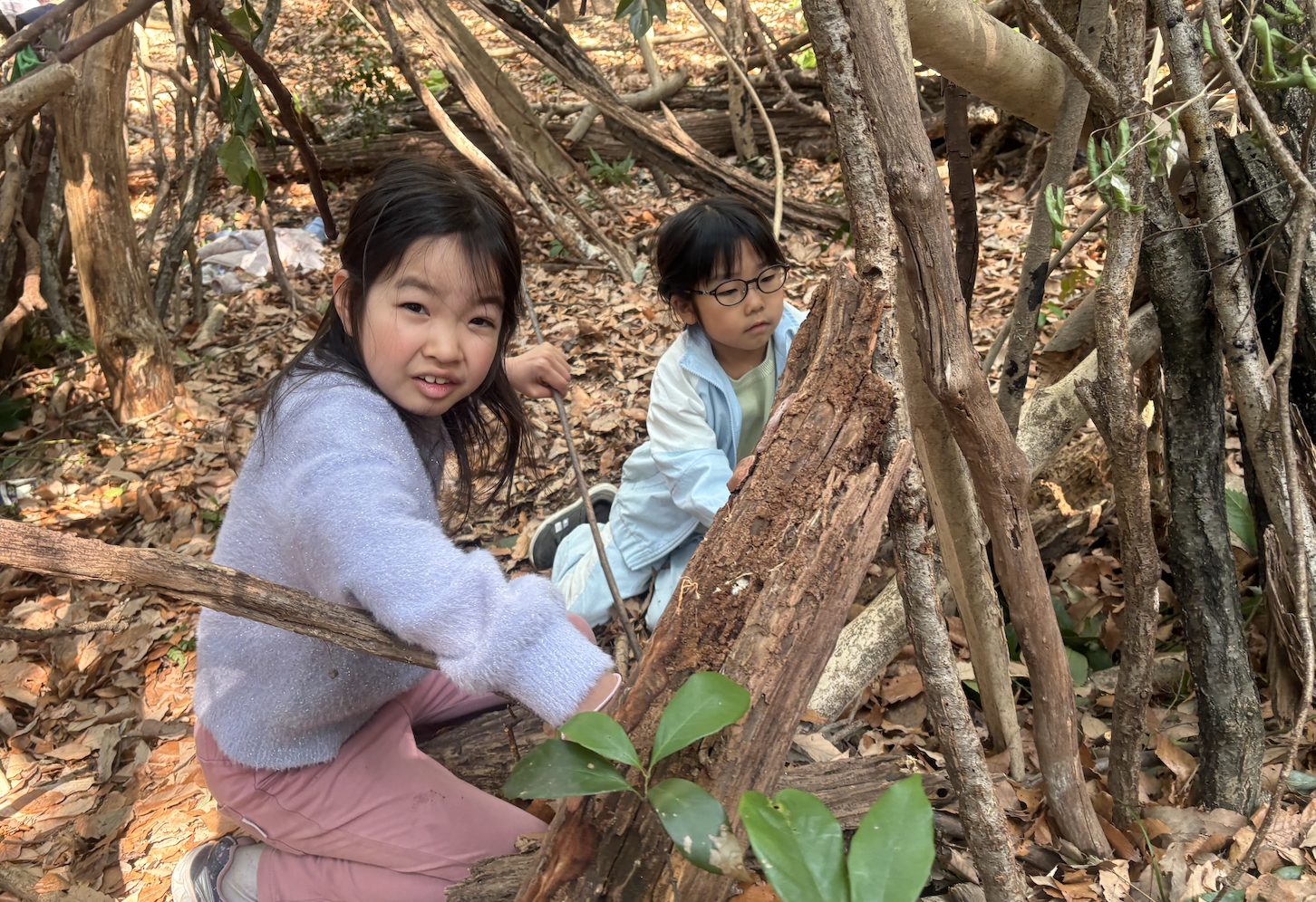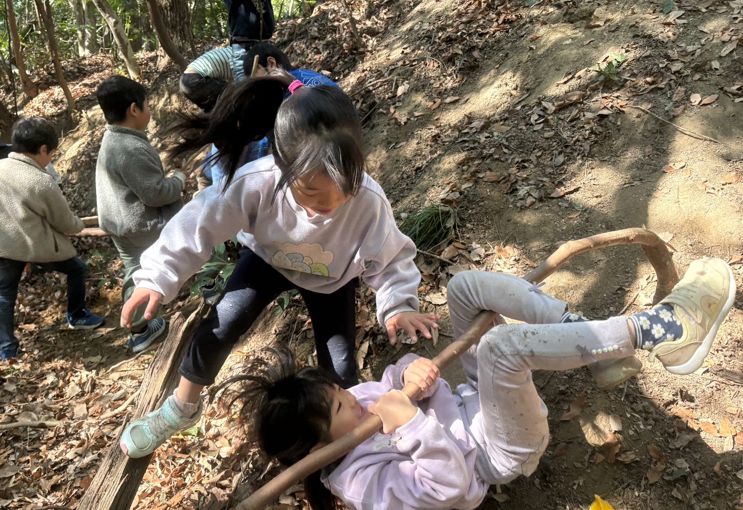 秘密基地を作っていると、自然と他の遊びを見つける子どもたち。
