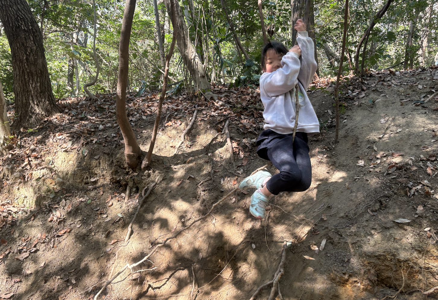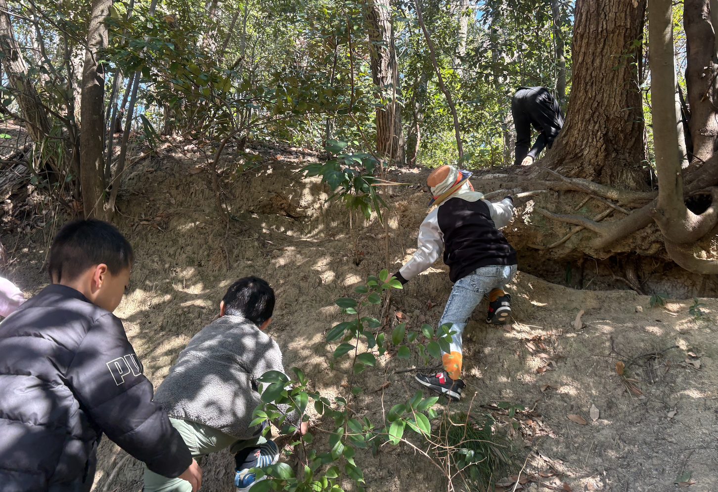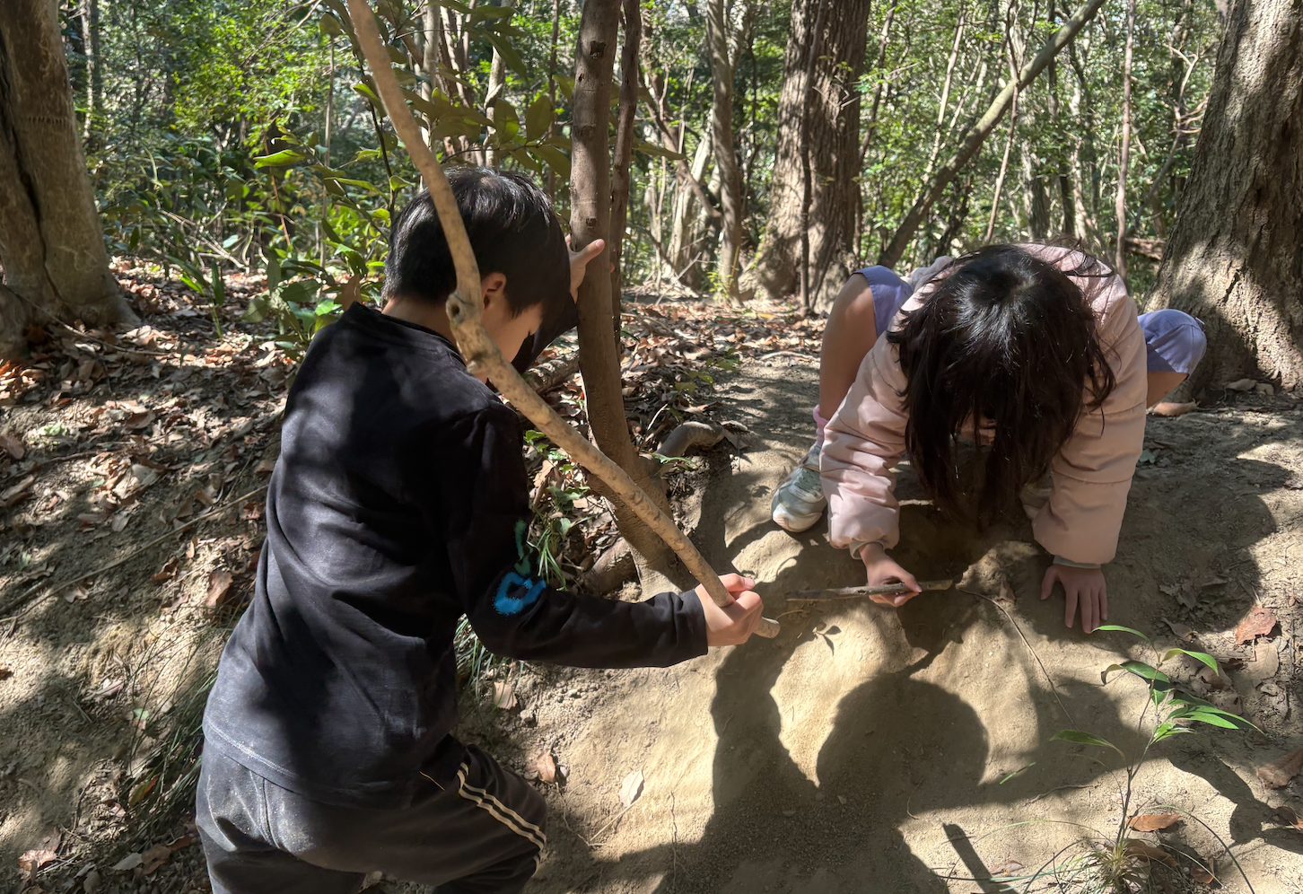 秘密基地を作っていると、自然と他の遊びを見つける子どもたち。