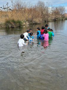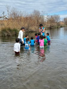 『つめたーい!』と冬の川を実感。ホンモノ体験だね。