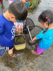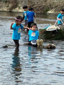 無事全員が入水完了。そしてタモを片手にひたすら生き物探しスタート!